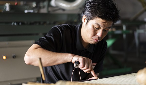 畳はご依頼頂いた方の生活の一部となるもの、ということを常に考えています。社員全員が技能士資格をもっているからこそ、畳の製作をただの作業ととらえることなく、どうすればその人の生活を豊かにできるか?を常に考えて畳を製作しています。